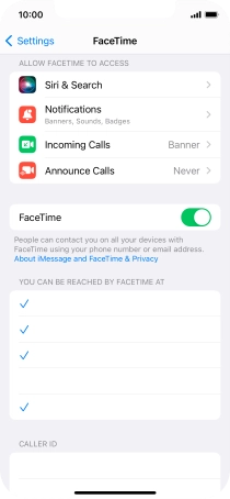 Press the required setting below "YOU CAN BE REACHED BY FACETIME AT".