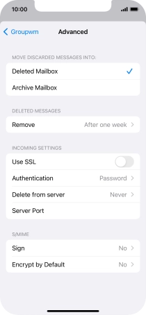 Press the required email account and follow the instructions on the screen to select settings for the specific account.