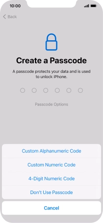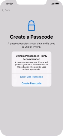 Follow the instructions on the screen to turn on use of phone lock code or press Don't Use Passcode.