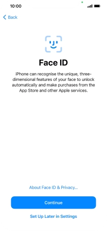 Follow the instructions on the screen to turn on use of Face ID or press Set Up Later in Settings.