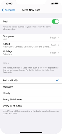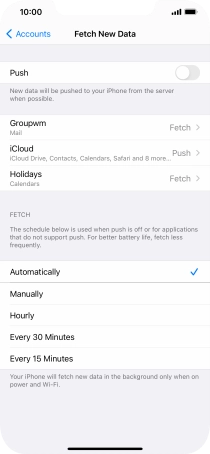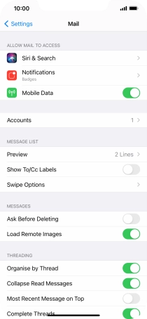 Press the required email account and follow the instructions on the screen to select settings for the specific account.