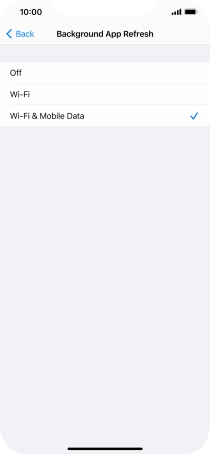 To turn on background refresh of apps using mobile network, press Wi-Fi & Mobile Data.