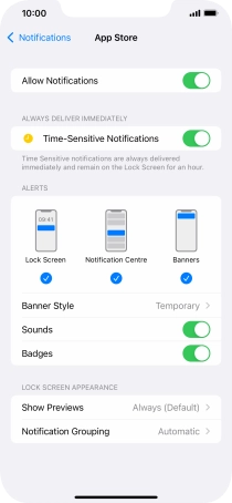Press the indicator next to "Time-Sensitive Notifications" to turn the function on or off.