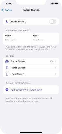 Press Add Schedule or Automation and follow the instructions on the screen to select settings for automatic activation of Do Not Disturb.