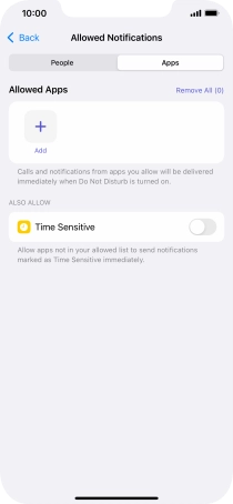 Press Apps and follow the instructions on the screen to select which apps you would like to receive notifications from when Do Not Disturb is turned on.