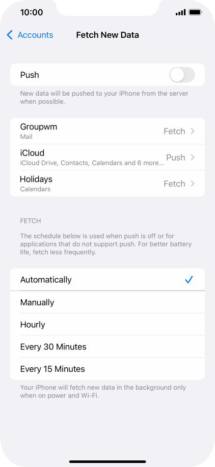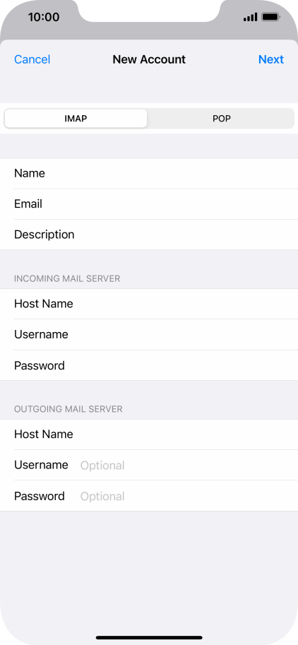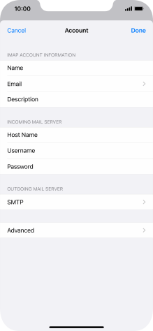 Press the required email account and follow the instructions on the screen to select settings for the specific account.