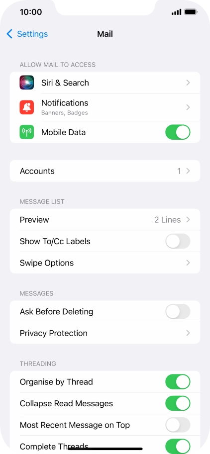 Press the required email account and follow the instructions on the screen to select settings for the specific account.