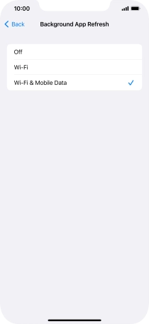 To turn on background refresh of apps using mobile network, press Wi-Fi & Mobile Data.