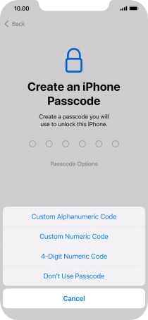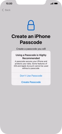 Follow the instructions on the screen to turn on use of phone lock code or press Don't Use Passcode.