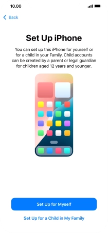 If your phone will be used by a child below the age of 13, follow the instructions on the screen to set up an Apple ID for the child.