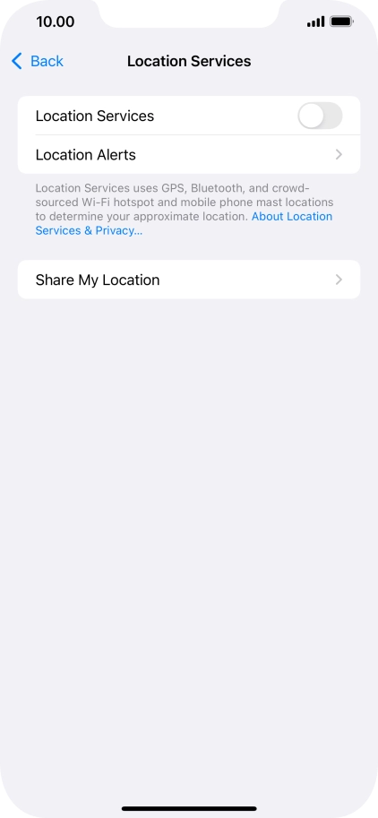 Press the indicator next to "Location Services" to turn the function on or off.