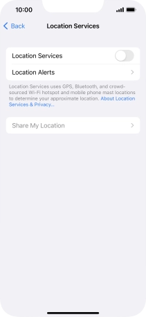 Press the indicator next to "Location Services" to turn the function on or off.