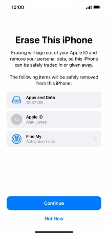 Key in the password for your Apple ID and press Erase iPhone. Wait a moment while the factory default settings are restored. Follow the instructions on the screen to set up your phone and prepare it for use.