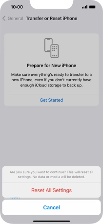 Press Reset All Settings. Wait a moment while the factory default settings are restored. Follow the instructions on the screen to set up your phone and prepare it for use.