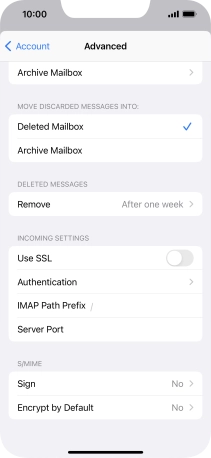 Press the required email account and follow the instructions on the screen to select settings for the specific account.