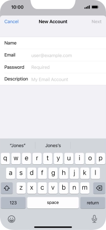 If this screen is displayed, you email account has been recognised and set up automatically. Follow the instructions on the screen to key in more information and finish setting up your phone.
