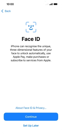 Follow the instructions on the screen to turn on use of Face ID or press Set Up Later.