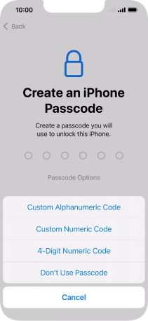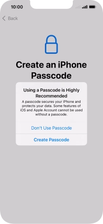 Follow the instructions on the screen to turn on use of phone lock code or press Don't Use Passcode.
