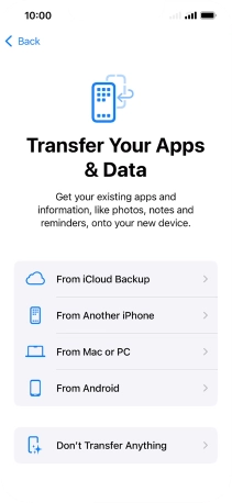 Press Don't Transfer Anything and follow the instructions on the screen to finish the activation.