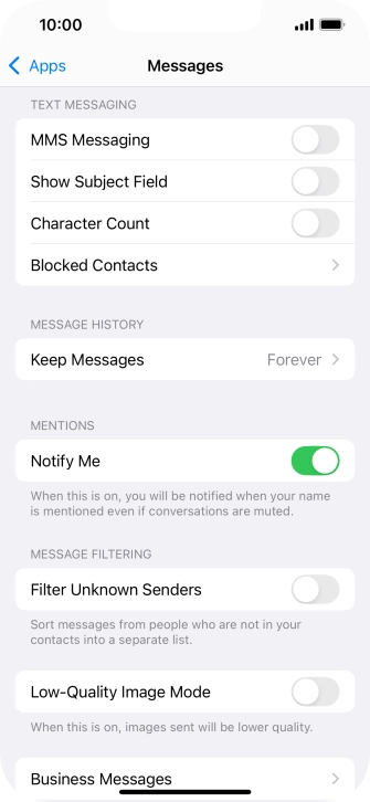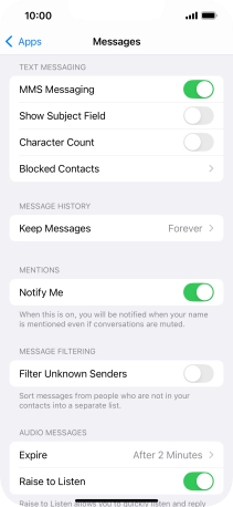Press the indicator next to "MMS Messaging" to turn on the function.