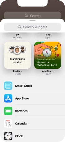 If the required widget is not displayed on the list, press the search field and follow the instructions on the screen to find the required widget.