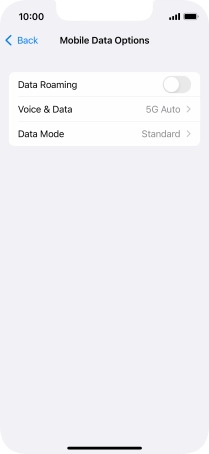 Press the indicator next to "Data Roaming" to turn the function on or off.