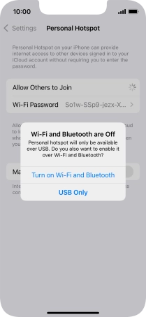 If Wi-Fi is turned on, press Wi-Fi and USB Only.