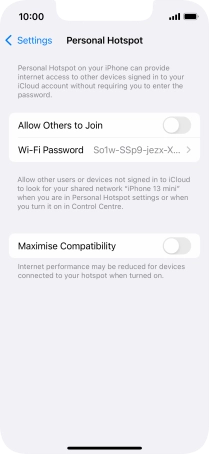 Find the list of available Wi-Fi networks and select your own Wi-Fi hotspot.