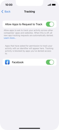 Press the indicator next to "Allow Apps to Request to Track" to turn the function on or off.