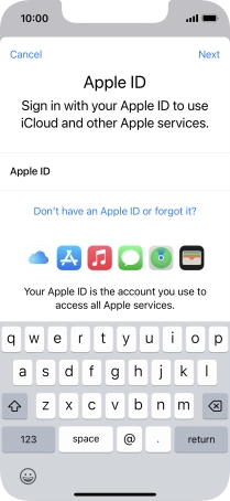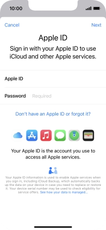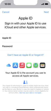 If you don t have an Apple ID, press Don't have an Apple ID or forgot it? and follow the instructions on the screen to create an Apple ID.