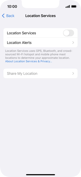 Press the indicator next to "Location Services" to turn the function on or off.