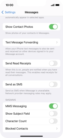 Press the indicator next to "MMS Messaging" to turn on the function.