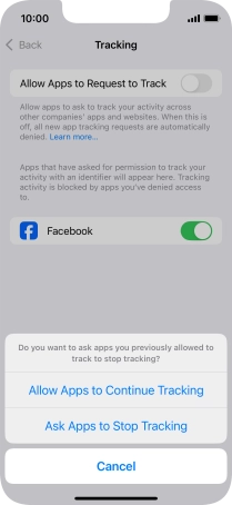 Press the indicator next to "Allow Apps to Request to Track" to turn the function on or off.