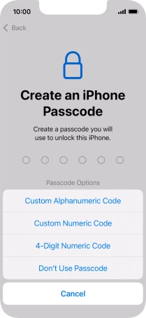 Follow the instructions on the screen to turn on use of phone lock code or press Don't Use Passcode.