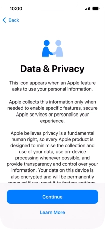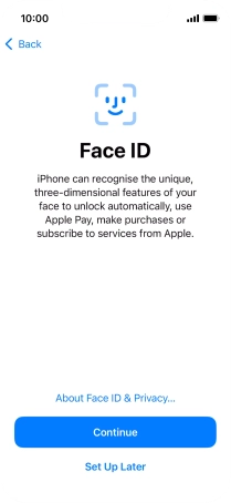Follow the instructions on the screen to turn on use of Face ID or press Set Up Later.