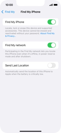 Select settings for Find My iPhone on your Apple iPhone 13 mini iOS 18