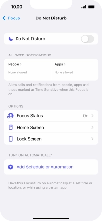 Press Add Schedule or Automation and follow the instructions on the screen to select settings for automatic activation of Do Not Disturb.