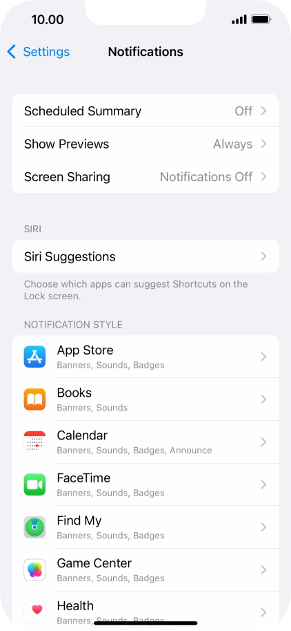 Press the indicator next to "Scheduled Summary" to turn on the function and follow the instructions on the screen to set the notification summary.