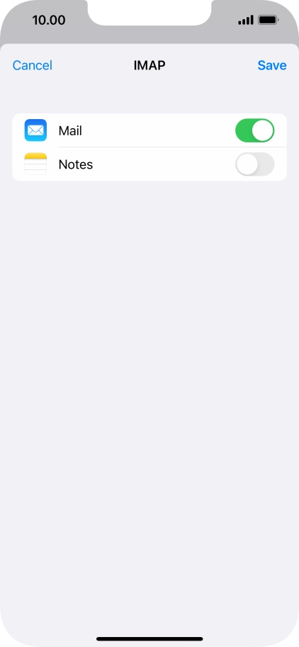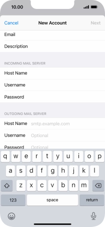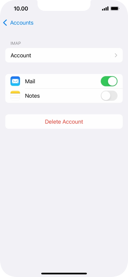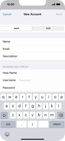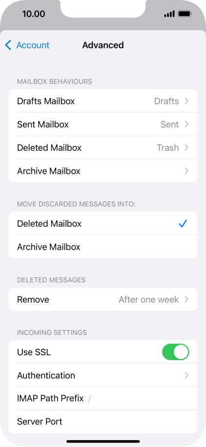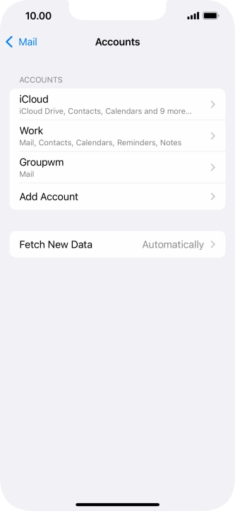 Press the required email account and follow the instructions on the screen to select settings for the specific account.