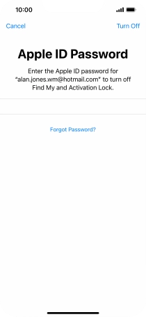 Key in the password for your Apple ID and press Erase iPhone. Wait a moment while the factory default settings are restored. Follow the instructions on the screen to set up your phone and prepare it for use.