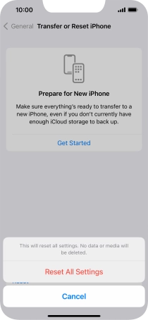 Press Reset All Settings. Wait a moment while the factory default settings are restored. Follow the instructions on the screen to set up your phone and prepare it for use.