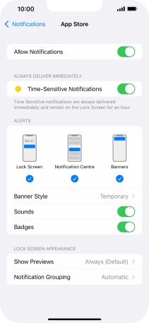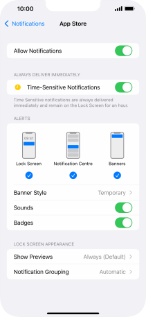 Press the indicator next to "Time-Sensitive Notifications" to turn the function on or off.