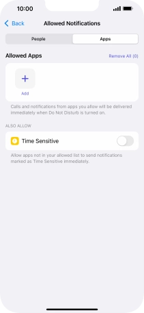 Press Apps and follow the instructions on the screen to select which apps you would like to receive notifications from when Do Not Disturb is turned on.