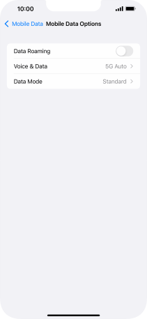 Press the indicator next to "Data Roaming" to turn the function on or off.