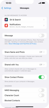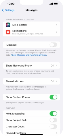 Press the indicator next to "MMS Messaging" to turn on the function.