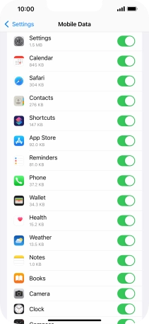 Press the indicator next to "Mobile Data" to turn the function on or off.