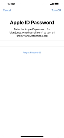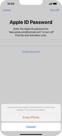 Key in the password for your Apple ID and press Erase iPhone. Wait a moment while the factory default settings are restored. Follow the instructions on the screen to set up your phone and prepare it for use.