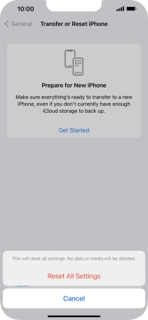 Press Reset All Settings. Wait a moment while the factory default settings are restored. Follow the instructions on the screen to set up your phone and prepare it for use.