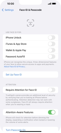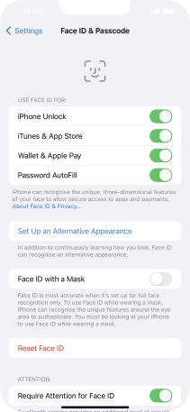 You can use your Face ID to turn off the phone lock code, allow access to apps and authorise payments.