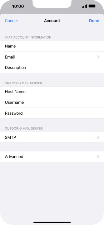 Press the required email account and follow the instructions on the screen to select settings for the specific account.